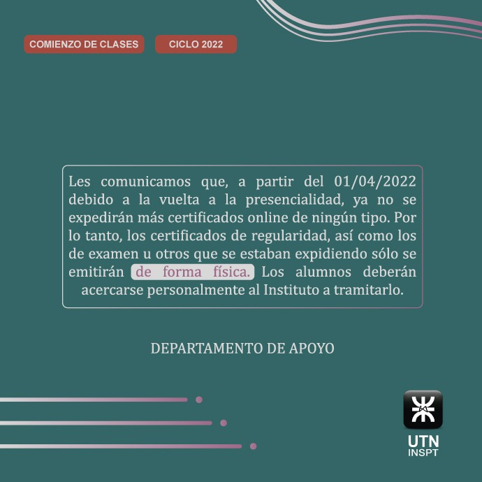 A partir del 1/04/2022, ya no se expedirán más certificados via online, solo se emitirán de forma física.