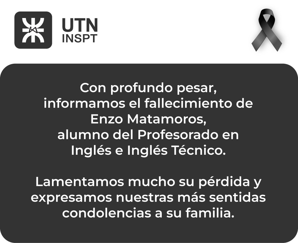Con profundo pesar, informamos el fallecimiento de Enzo Matamoros, alumno del Profesorado en Inglés e Inglés Técnico.