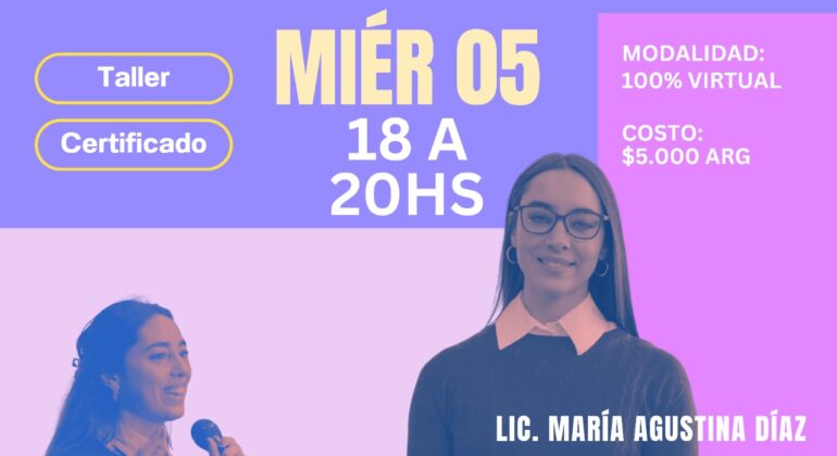 Lic. María Agustina Díaz. Politóloga (UBA), diplomada en Género (UTN) y en Discursos de Odio (Inst. Arbabanel). Docente de género y derechos en UADER y UP. Redactora columna de género en Revista La Mala. Voluntaria Fundación Micaela.