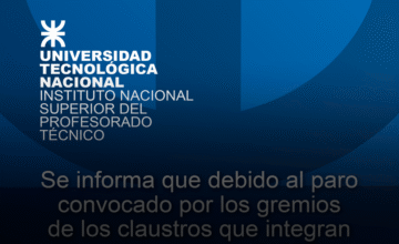 Se informa que debido al paro convocado por los gremios de los claustros que integran esta comunidad, el INSPT no