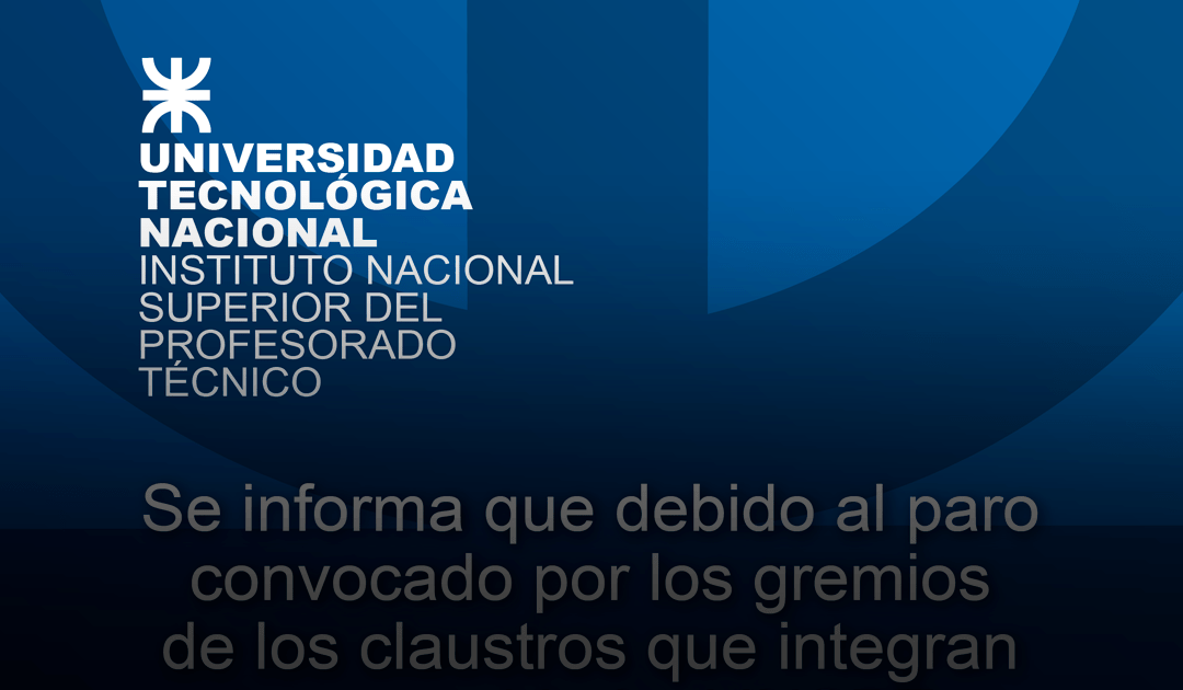Se informa que debido al paro convocado por los gremios de los claustros que integran esta comunidad, el INSPT no